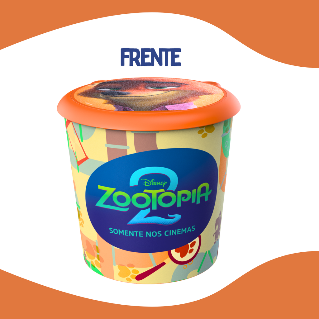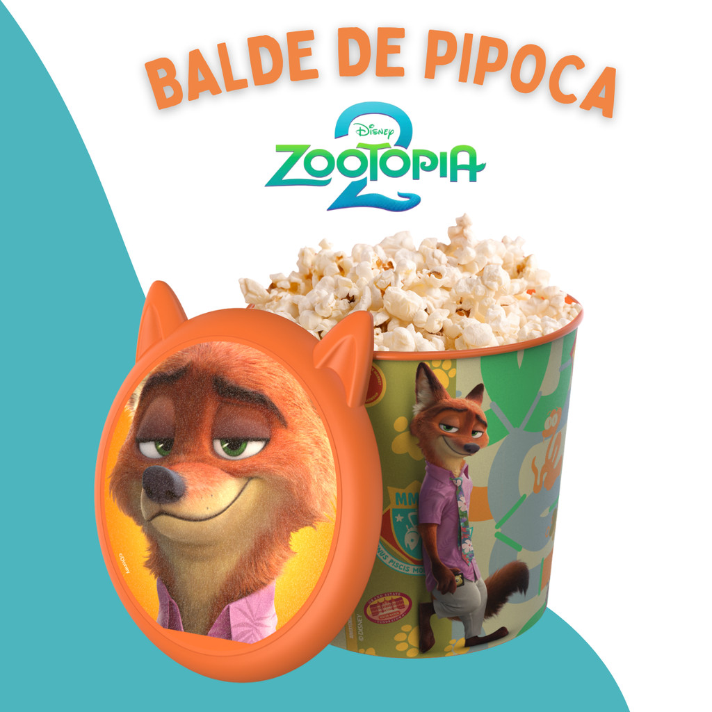 Prepare-se pra se divertir com Zootopia 2! Judy Hopps e Nick Wilde estão de volta em uma nova missão, e o Cine 3 traz o balde oficial do filme pra você entrar no clima dessa aventura.