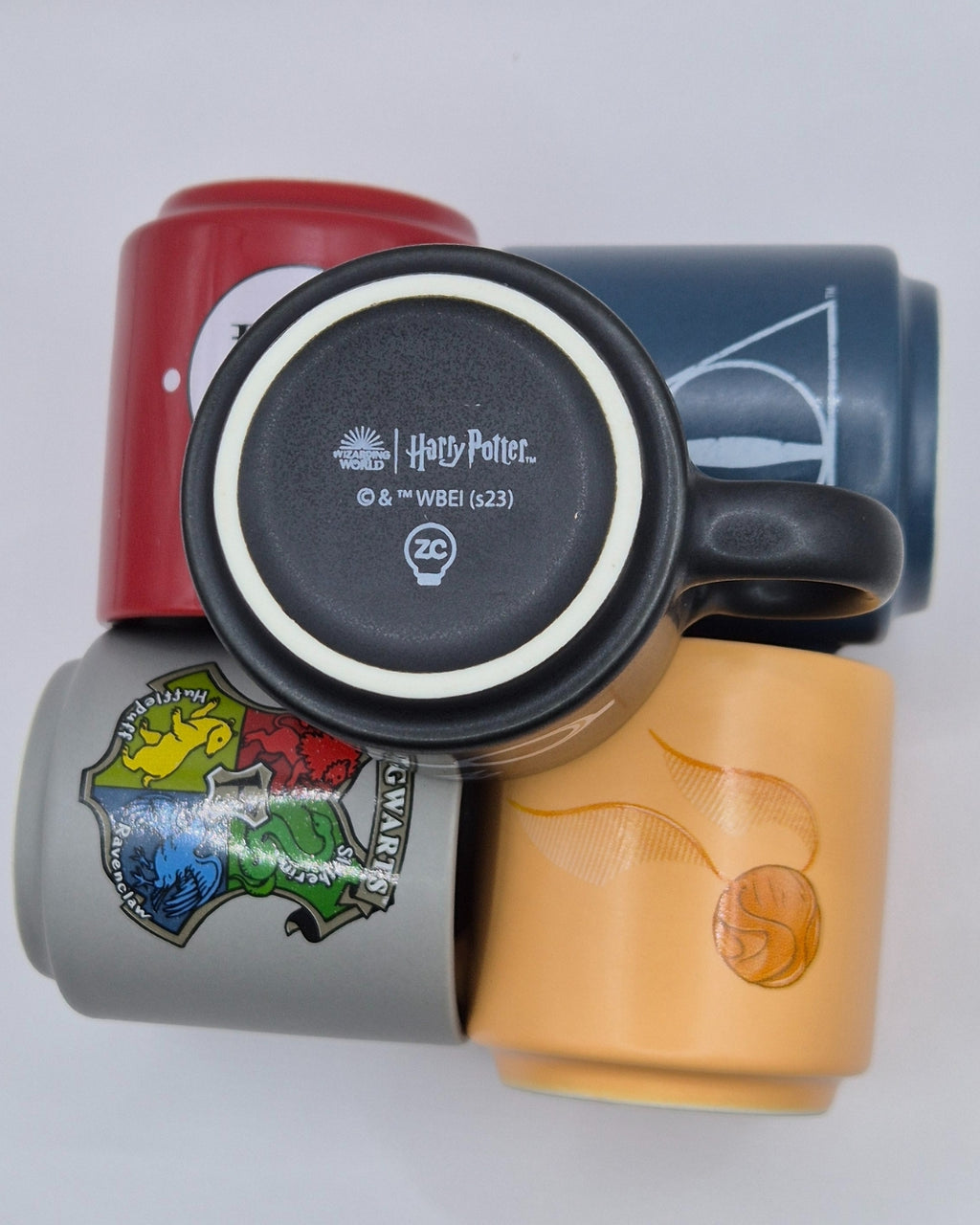 O Kit com 5 Mini Xícaras Harry Potter traz os ícones mais marcantes do mundo bruxo direto para o seu cantinho: Pomo de Ouro, Relíquias da Morte, Brasão de Hogwarts, Óculos do Harry e Plataforma 9¾.