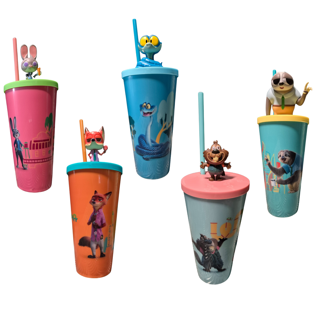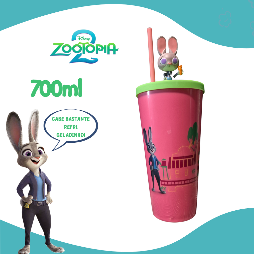 Fabricado em plástico resistente, o copo possui uma tampa prática e um canudo, garantindo que suas bebidas estejam sempre à mão e sem derramamentos. Com um design que remete ao formato de cinema, ele traz personagens icônicos de Zootopia 2, proporcionando uma experiência divertida e temática para crianças e adultos.
