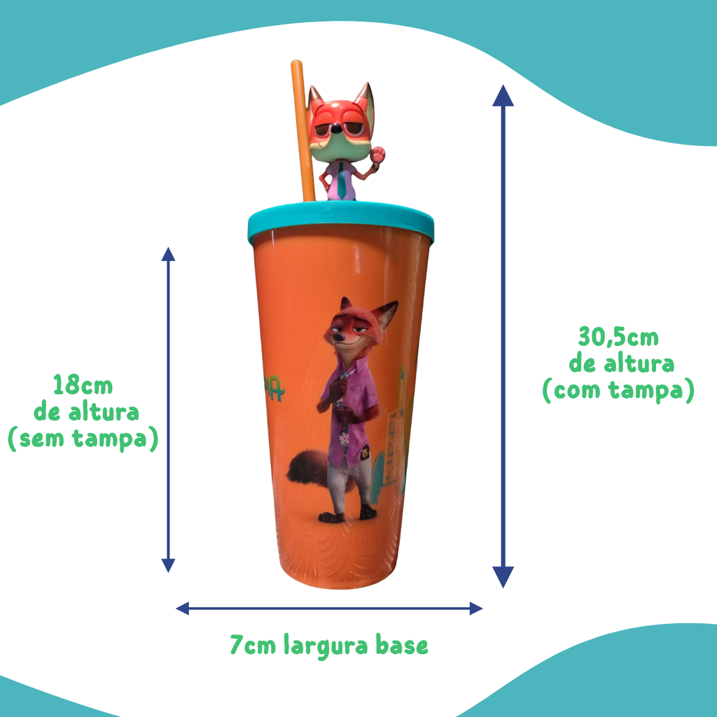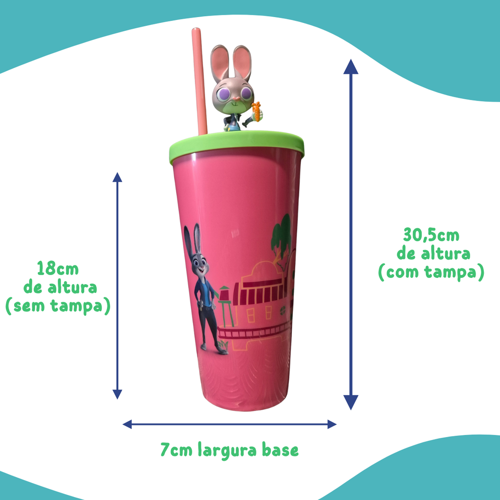 Com 30,5 cm de altura e 9 cm de diâmetro na boca, o Copo Zootopia é fácil de manusear e se destaca em qualquer mesa. Adicione um toque de magia e diversão às suas bebidas com este copo que combina funcionalidade e estilo.
